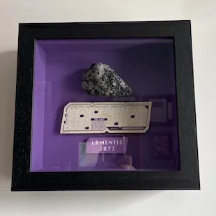 A prop from the Loki set - a rock from the destroyed planet Lamentis, and a train ticket - which Kate kept as a memento