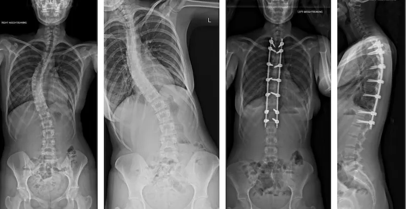X-rays of Camille's own spine, pre- and post-surgery provided the inspiration for her designs