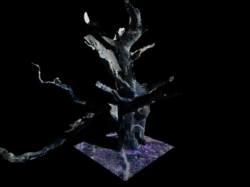 Photographer Jasmine Pope is UCA’s final nominee, with her Woodland Caudex final project. It is an expansive digital archive that seeks to preserve trees in various woodlands by cataloguing them as 3D objects in a digital void. Each piece in the series shows a 3D render of a real tree created using LiDAR scanning technology. But the images are presented in negative form with colour inverted, as a nod to traditional analogue photographic archives.