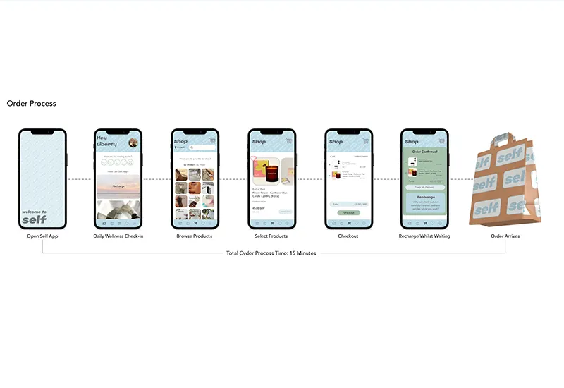 Finally, the award for Professional Development was presented to Katherine Clarke for their degree project. Self is an innovative wellness app offering immediate delivery of self-care products for young career chasers, aiming to engrain wellness into their busy everyday lives and thrive as a result.